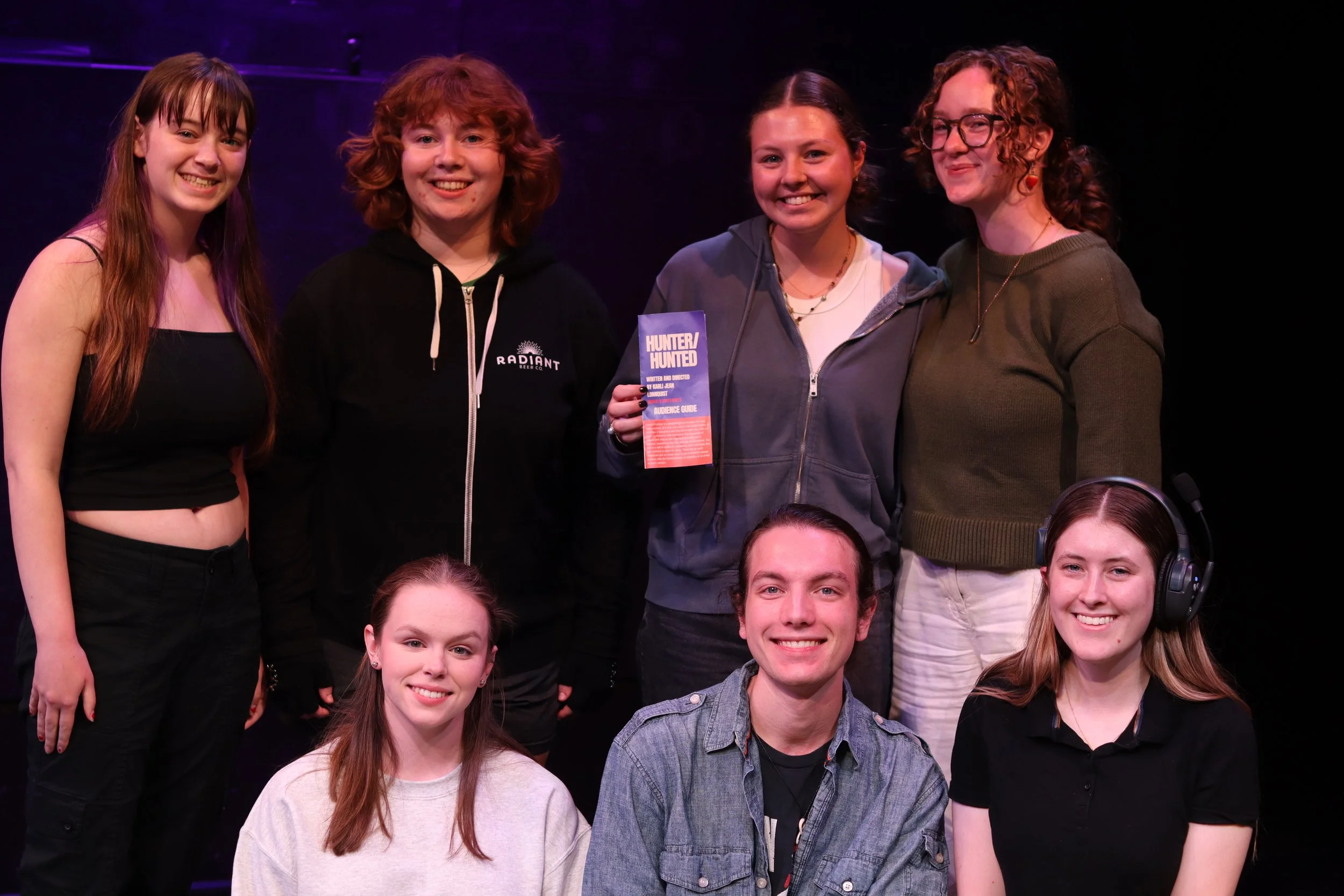 Karli (top right) and her team for the world premiere production of Hunter/Hunted, written and directed by Karli, at Chapman University College of Performing arts.